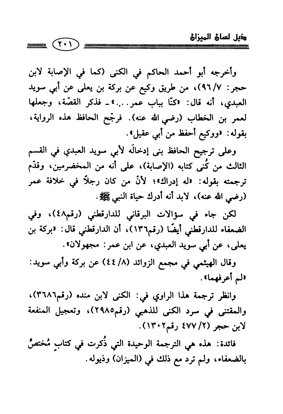 فائدة: هذه هي الترجمة الوحيدة التي ذُكرت في كتابٍ مُختصٍّ بالضعفاء، ولم ترد مع ذلك في (الميزان) وذيوله.