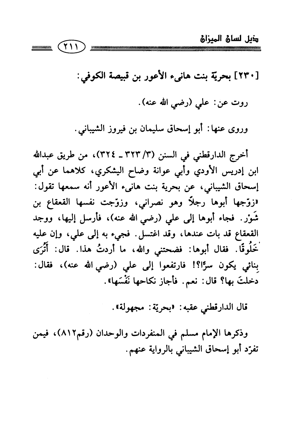 [230] بحريّة بنت هانئ الأعور بن قبيصة الكوفي: