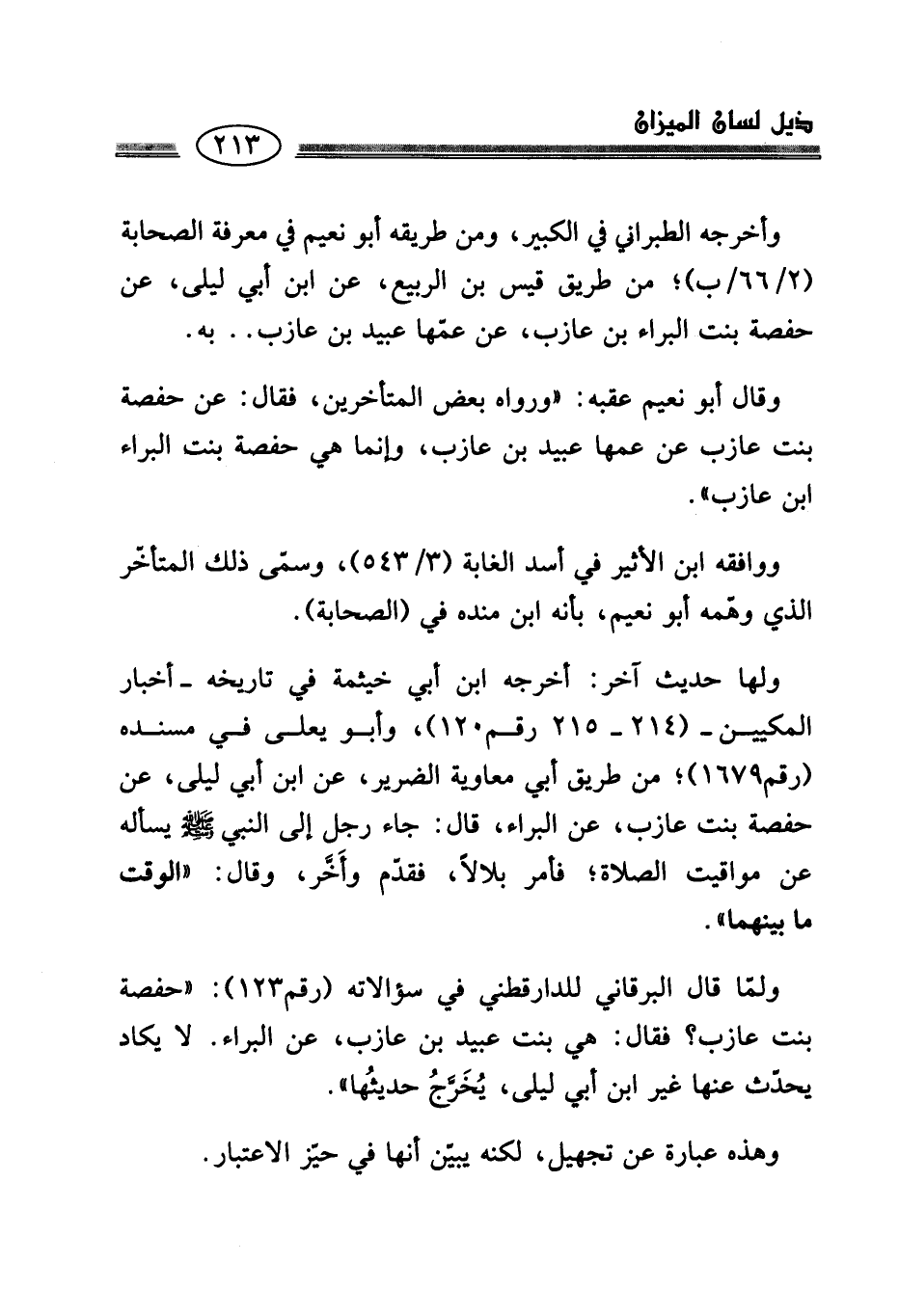 وقال أبو نعيم عقبه: "ورواه بعض المتأخرين، فقال: عن حفصة بنت عازب عن عمها عبيد بن عازب، وإنما هي حفصة بنت البراء ابن عازب".