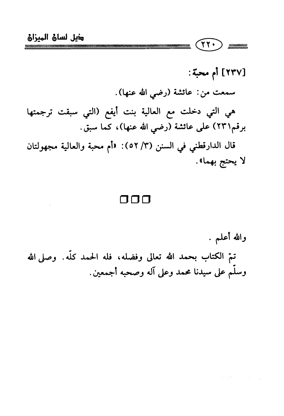 تمّ الكتاب بحمد الله تعالى وفضله، فله الحمد كلّه. وصلى الله وسلّم على سيدنا محمَّد وعلى آله وصحبه أجمعين.