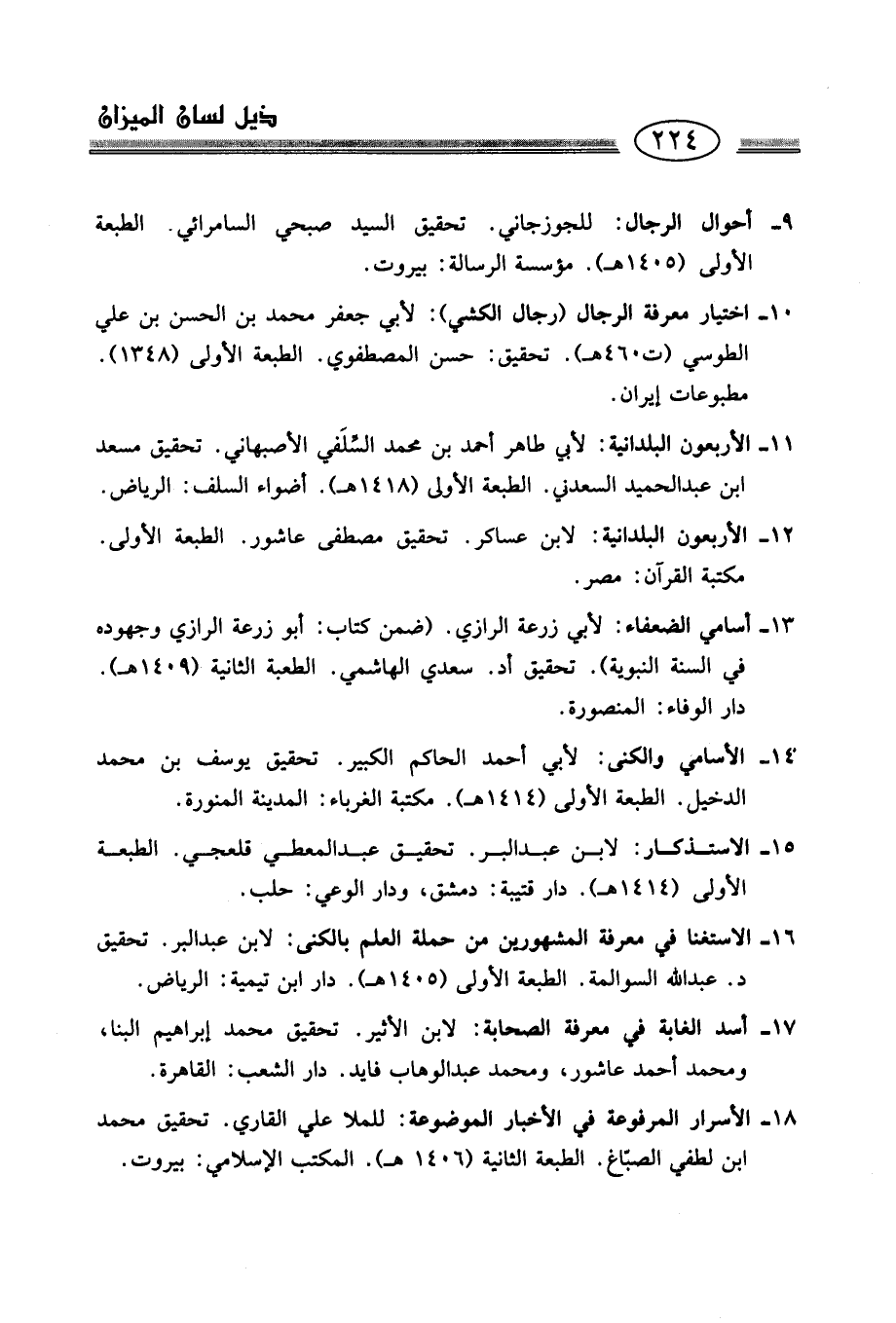 9 - أحوال الرجال: للجوزجاني. تحقيق السيد صبحي السامرائي. الطبعة الأولى (1405 هـ). مؤسسة الرسالة: بيروت.