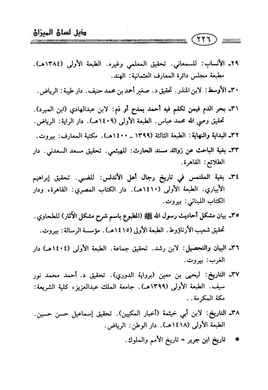 29 - الإنساب: للسمعاني. تحقيق المعلمي وغيره. الطبعة الأولى (1384 هـ).