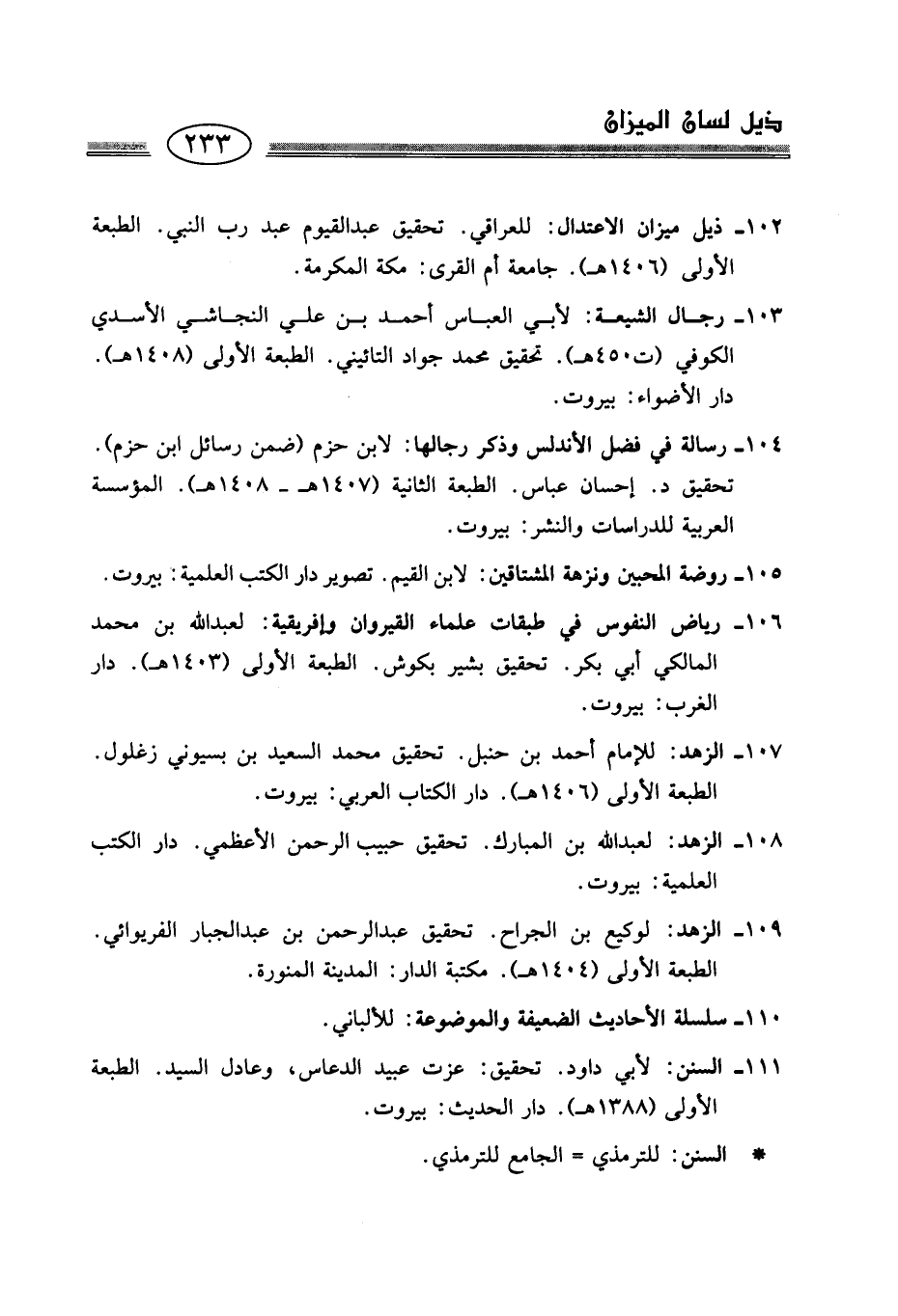 102 - ذيل ميزان الاعتدال: للعراقي. تحقيق عبد القيوم عبد رب النبي. الطبعة الأولى (1406 هـ). جامعة أم القرى: مكة المكرمة.