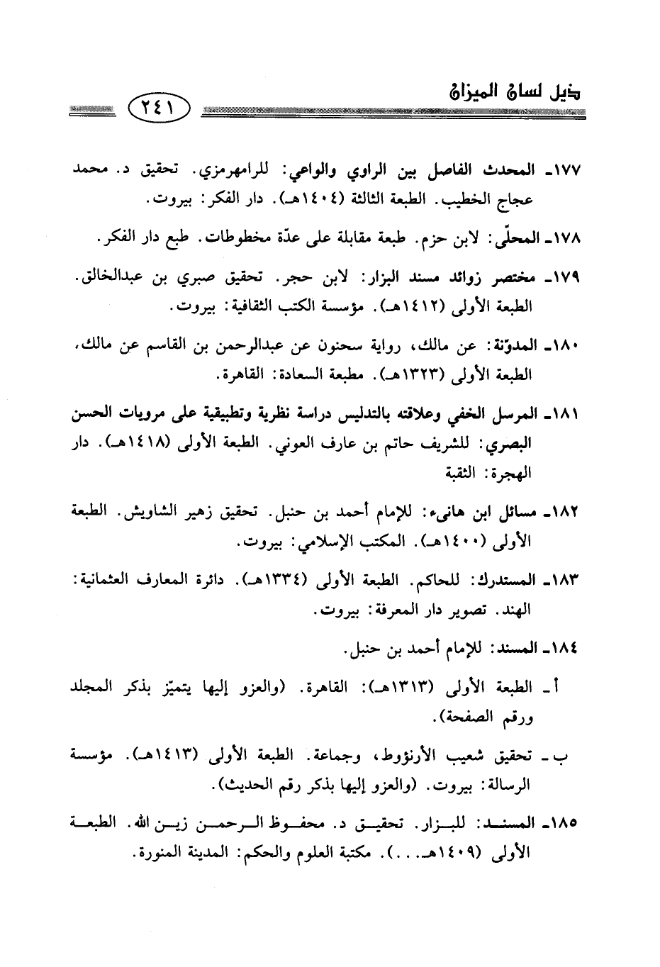 177 - المحدث الفاصل بين الراوي والواعي: للرامهرمزي. تحقيق د. محمَّد عجاج الخطيب. الطبعة الثالثة (1404 هـ). دار الفكر: بيروت.