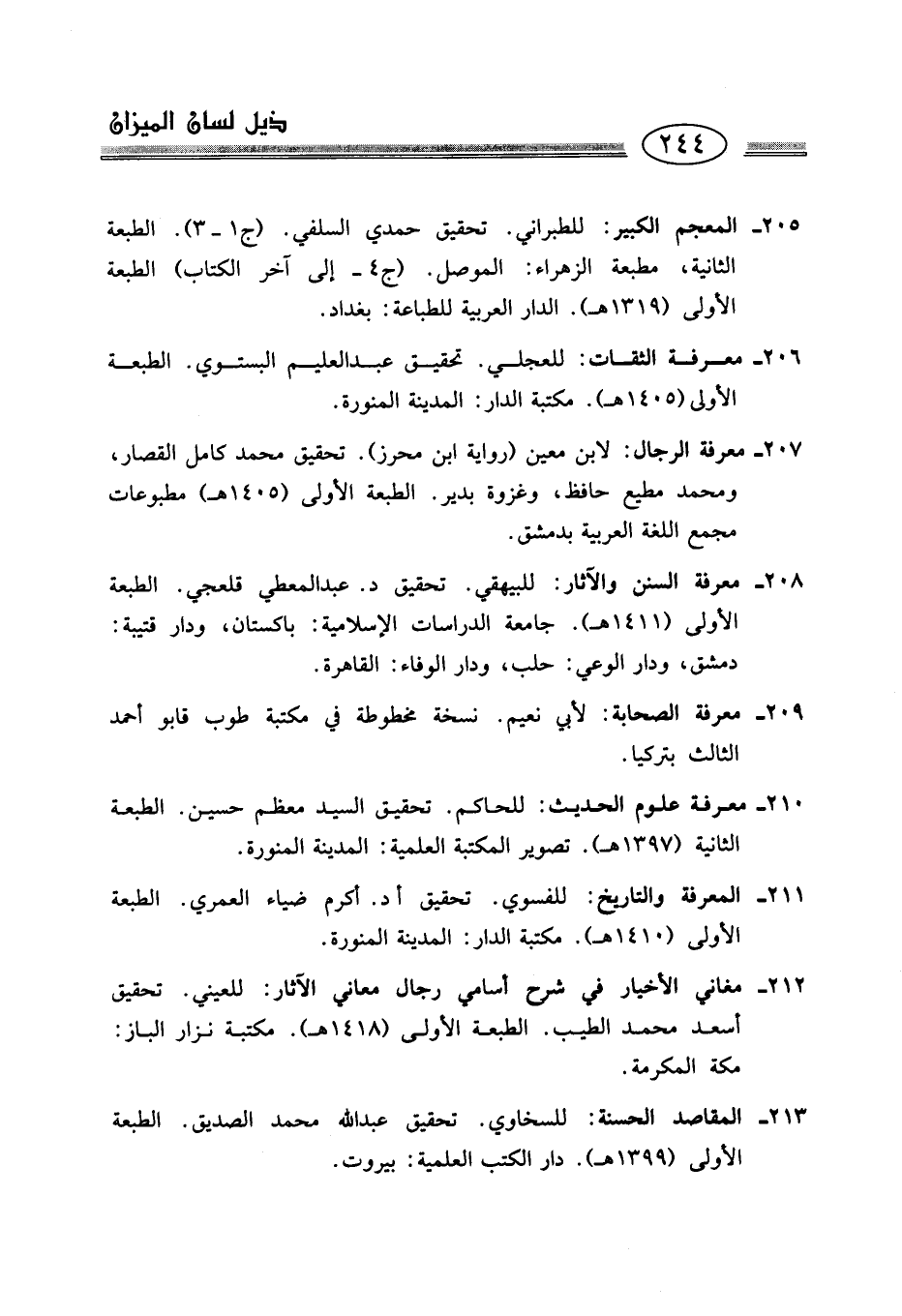 205 - المعجم الكبير: للطبراني. تحقيق حمدي السلفي. (ج 1 - 3). الطبعة الثانية، مطبعة الزهراء: الموصل. (ج 4 - إلى آخر الكتاب) الطبعة الأولى (1319 هـ). الدار العربية للطباعة: بغداد.