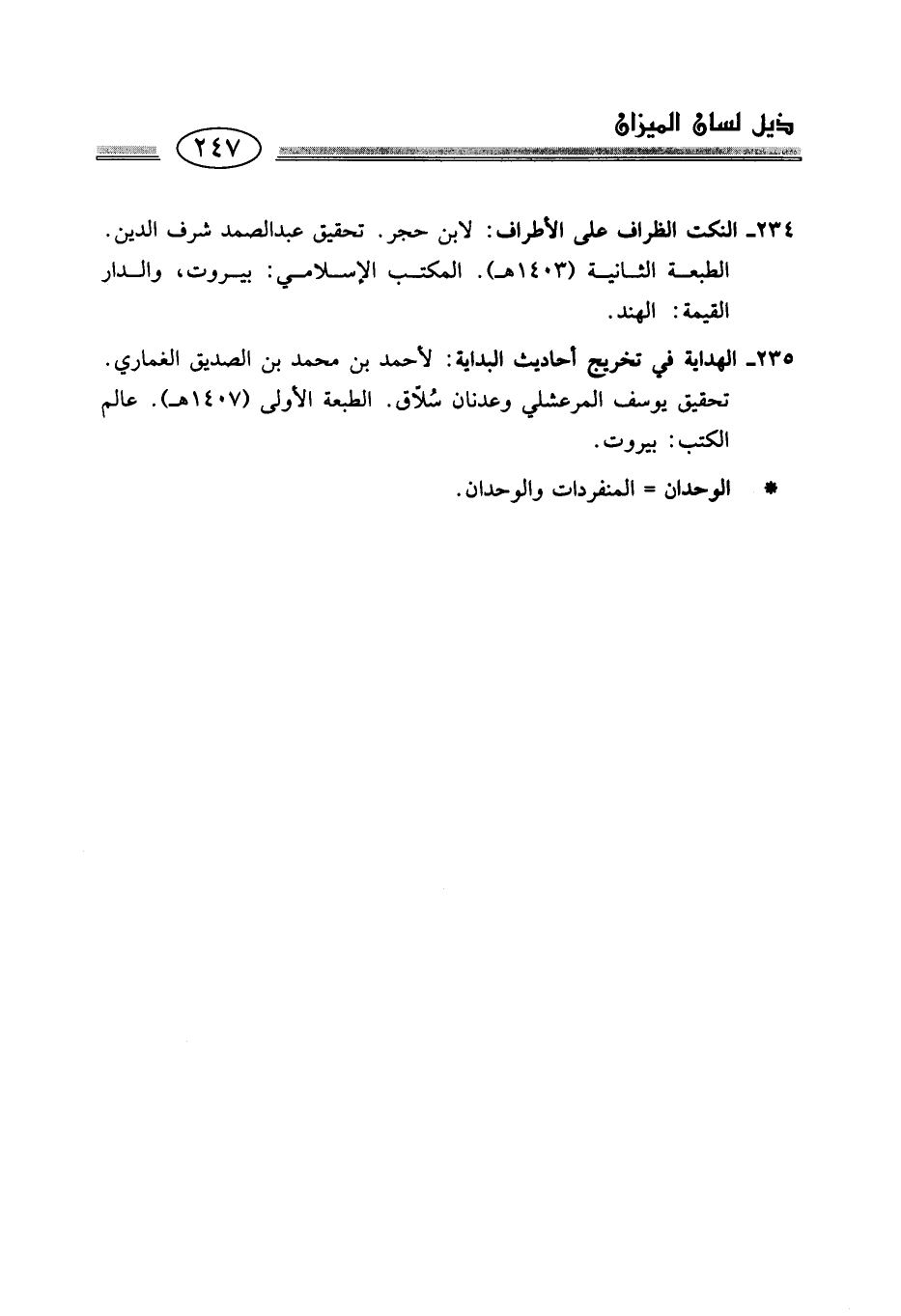 234 - النكت الظراف على الأطراف: لابن حجر. تحقيق عبد الصمد شرف الدين. الطبعة الثانية (1403 هـ). المكتب الإِسلامي: بيروت، والدار القيمة: الهند.