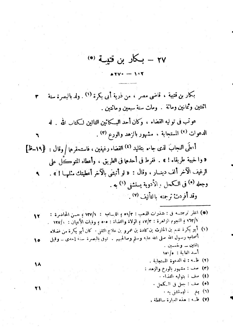 بكار بن قتيبة، قاضى مصر، من ذرية أبى بكرة. ولد بالبصرة سنة اثنتين وثمانين ومائة. ومات سنة سبعين ومائتين.