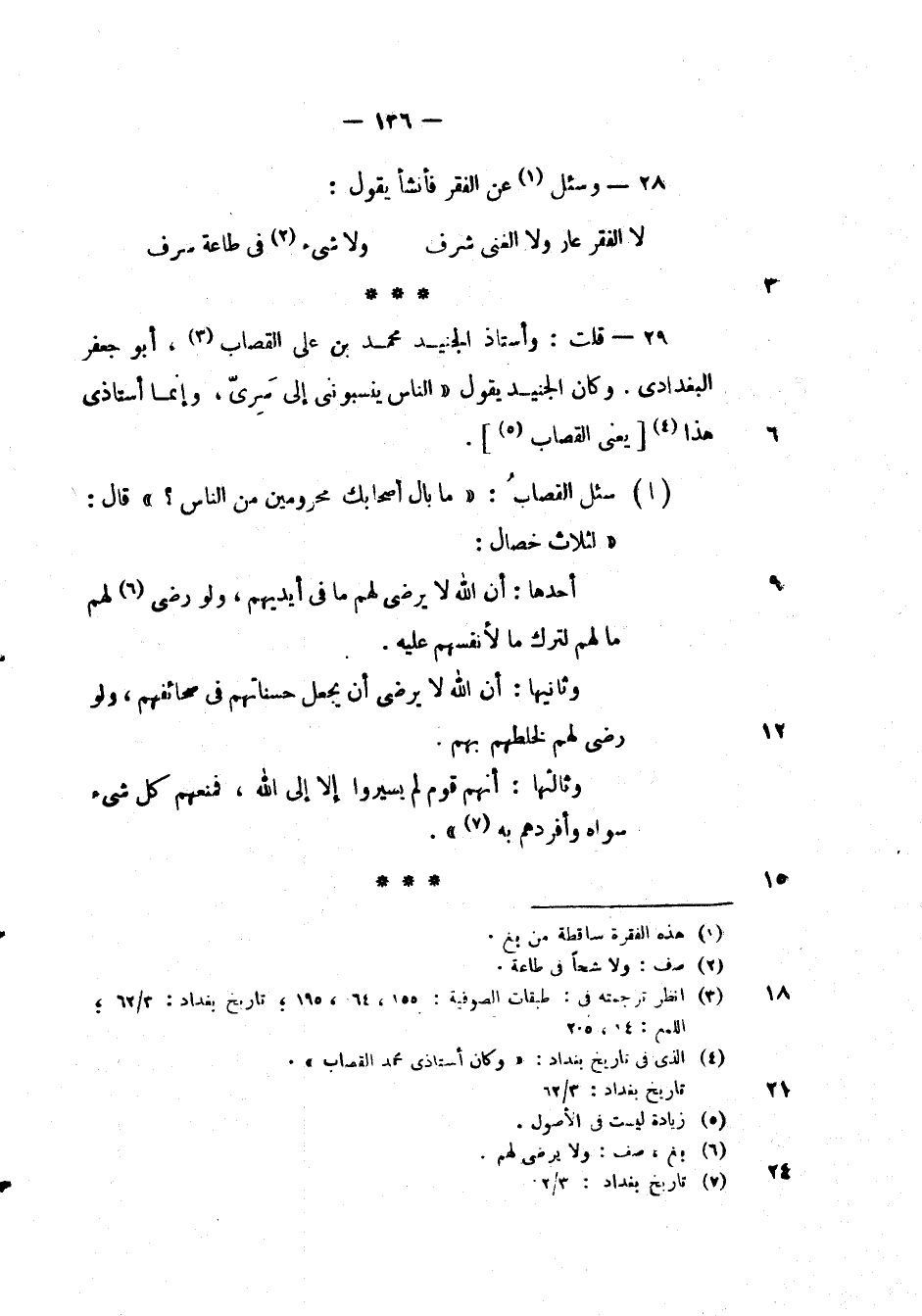 سئل القصاب: " ما بال أصحابك محرومين من الناس؟ " قال: " لثلاث خصال: أحدها: أن الله لا يرضي لهم ما في أيديهم، ولو رضي لهم ما لهم لترك ما لأنفسهم عليه.