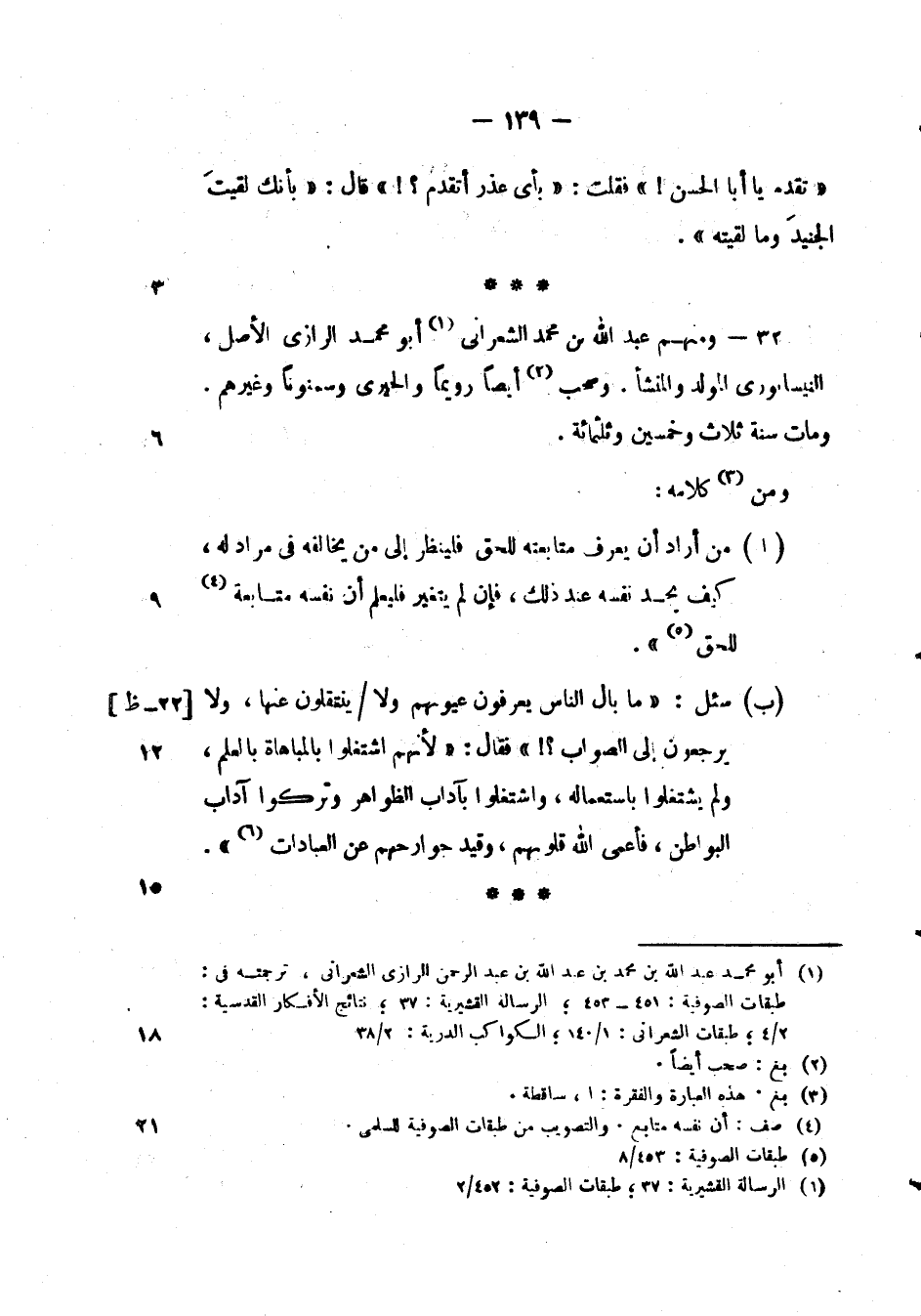 ومنهم عبد الله بن محمد الشعراني أبو محمد الرازي الأصل، النيسابوري المولد والمنشأ. وصحب أيضاً رويماً والحيري وسمنوناً وغيرهم. ومات سنة ثلاث وخمسين وثلثمائة.