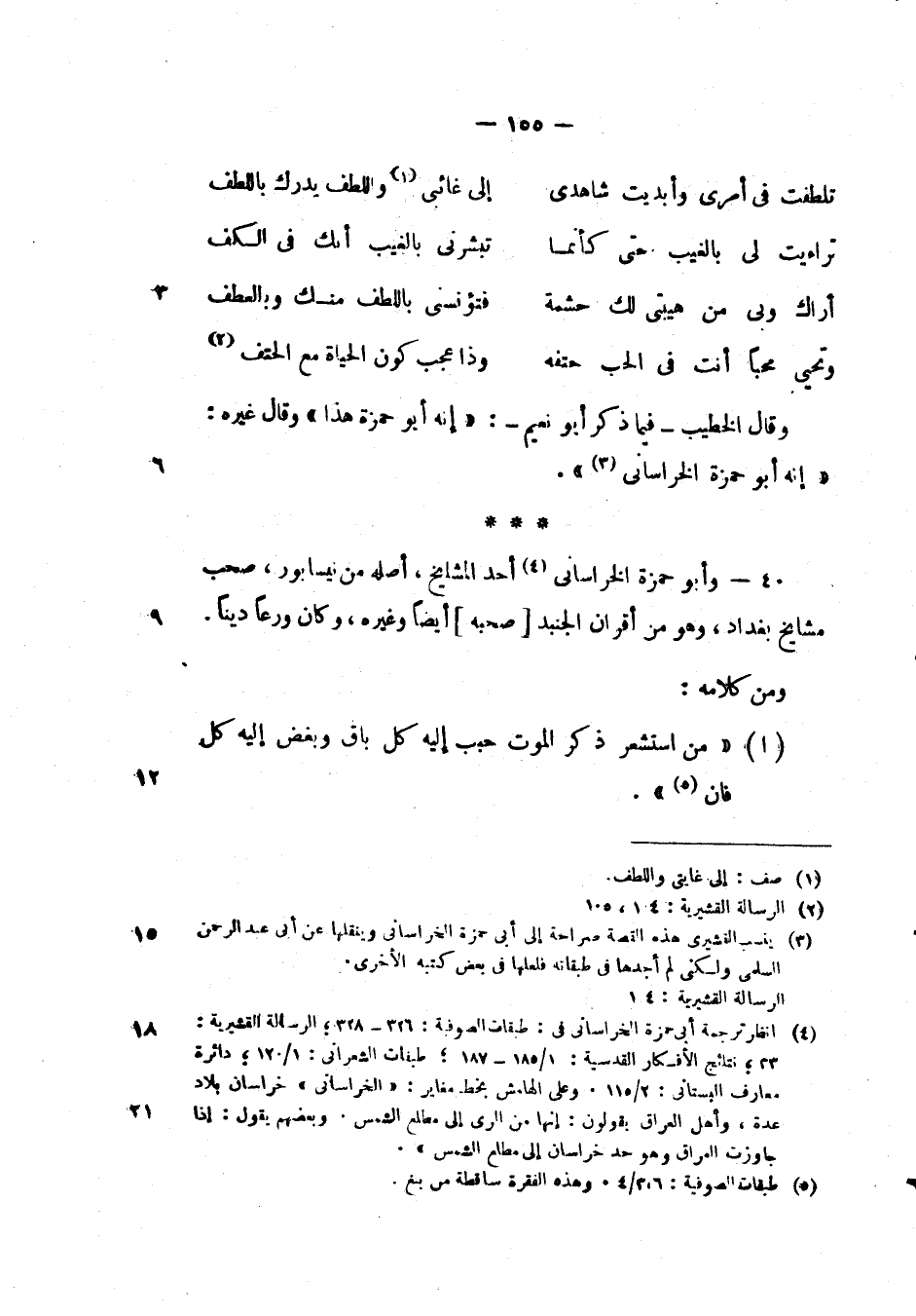 وأبو حمزة الخراساني أحد المشايخ، أصله من نيسابور، صحب مشايخ بغداد، وهو من أقران الجنيد صحبه أيضاً وغيره، وكان ورعاً ديناً.
