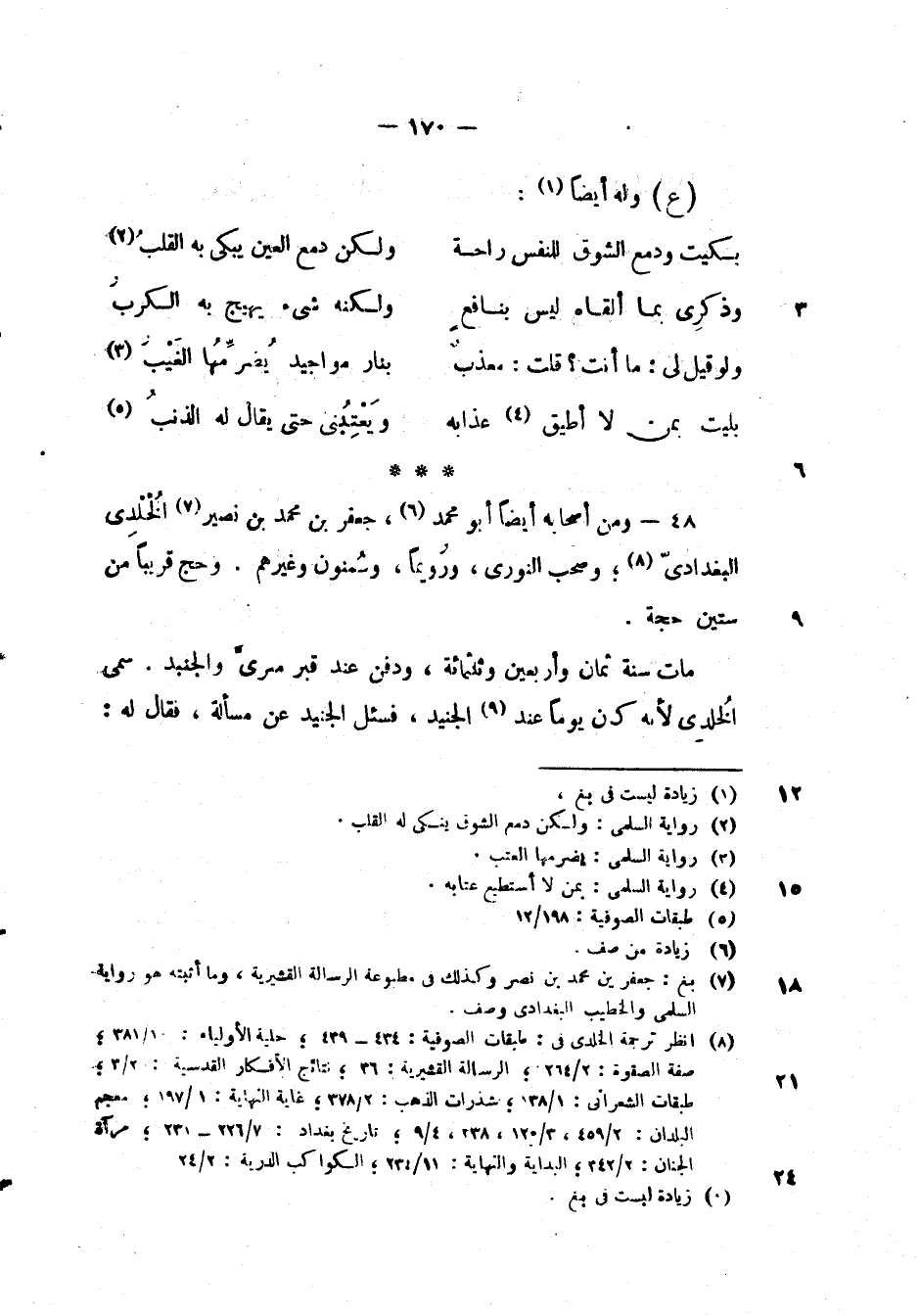 ومن أصحابه أيضاً أبو محمد، جعفر بن محمد بن نصير الخلدي البغدادي؛ وصحب النوري، ورويماً، وسمنون وغيرهم. وحج قريباً من ستشن حجة.