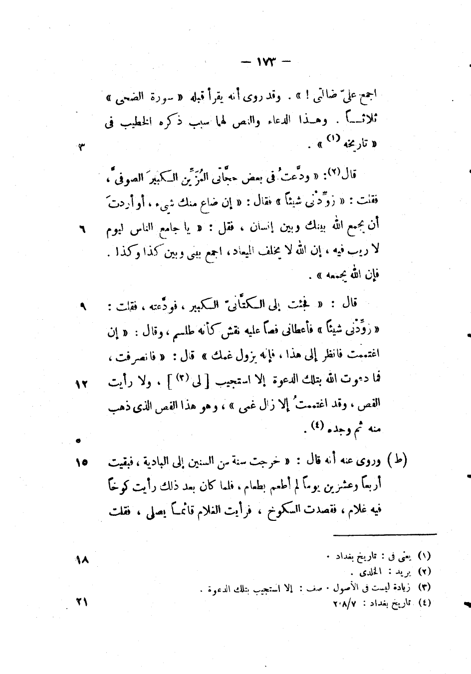 قال: " ودعت في بعض حجاتي المزين الكبير الصوفي، فقلت: " زودني شيئاً " فقال: " إن ضاع منك شئ، أو أردت أن يجمع الله بينك وبين إنسان، فقل: " يا جامع الناس ليوم لا ريب فيه، إن الله لا يخلف الميعاد، اجمع بيني وبين كذا وكذا. فان الله يجمعه ".