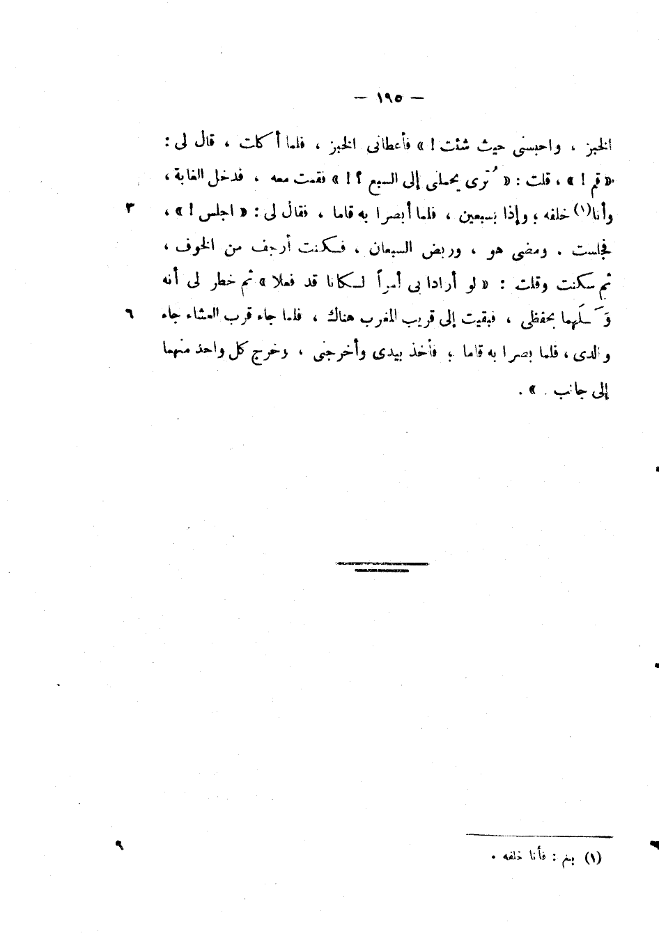 الخبز، واحبسني حيث شئت! " فأعطاني الخبز، فلما أكلت، قال لي: " قم! "، قلت: " ترى يحملني إلى السبع؟! " فقمت معه، فدخل الغابة، وأنا خلفه؛ وإذا بسبعين، فلما أبصرا به قاما، فقال لى: " اجلس! "، فجلست، ومضى هو، وريض السبعان، فكنت أرجف من الخوف، ثم سكنت وقلت: " لو أراد بى أمراً لكانا قد فعلا " ثم خطر لي أنه ولهما بحفظي، فبقيت إلى قريب المغرب هناك، فلما جاء قرب العشاء جاء والدى، فلما بصرا به قاما؛ فأخذ بيدي وأخرجني، وخرج كل واحد منهما إلى جانب ".