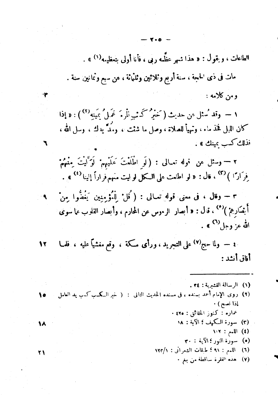 ومن كلامه: وقد سئل عن حديث) خير كسب المرء عمل يمينه (: " إذا كان الليل فخذ ماء، وتهيا للصلاة، وصلي ما شئت، ومد يدك، وسل الله، فذلك كسب يمينك ".