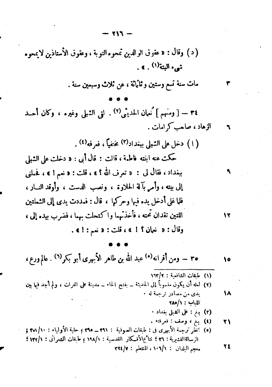 ومنهم نعمان الحديثي. لقي الشبلي وغيره، وكان أحد الزهاد، صاحب كرامات.