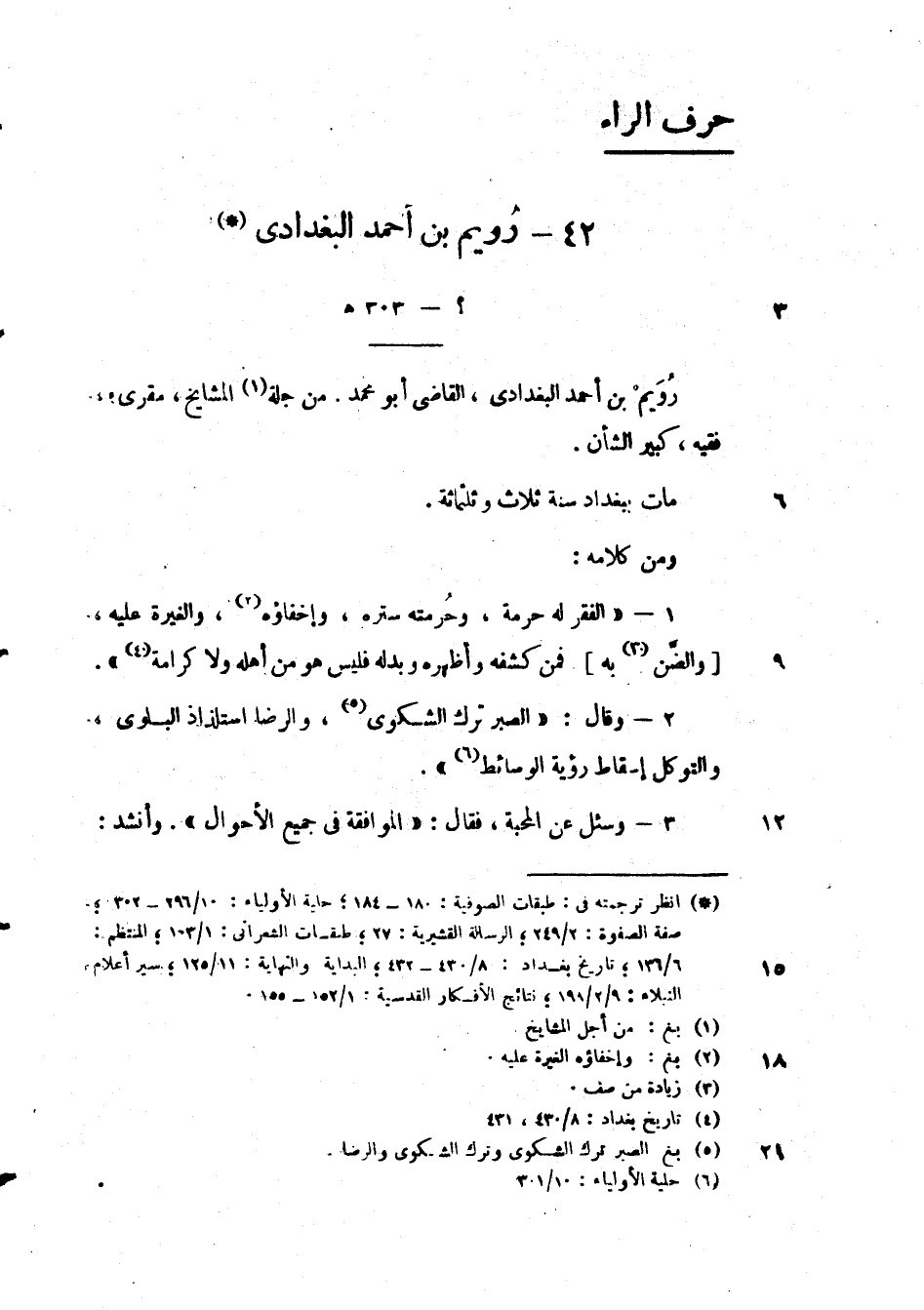 رُوَيمْ بن أحمد البغدادي، القاضي ابو محمد. من جلة المشايخ، مقرئ، فقيه، كبير الشأن.