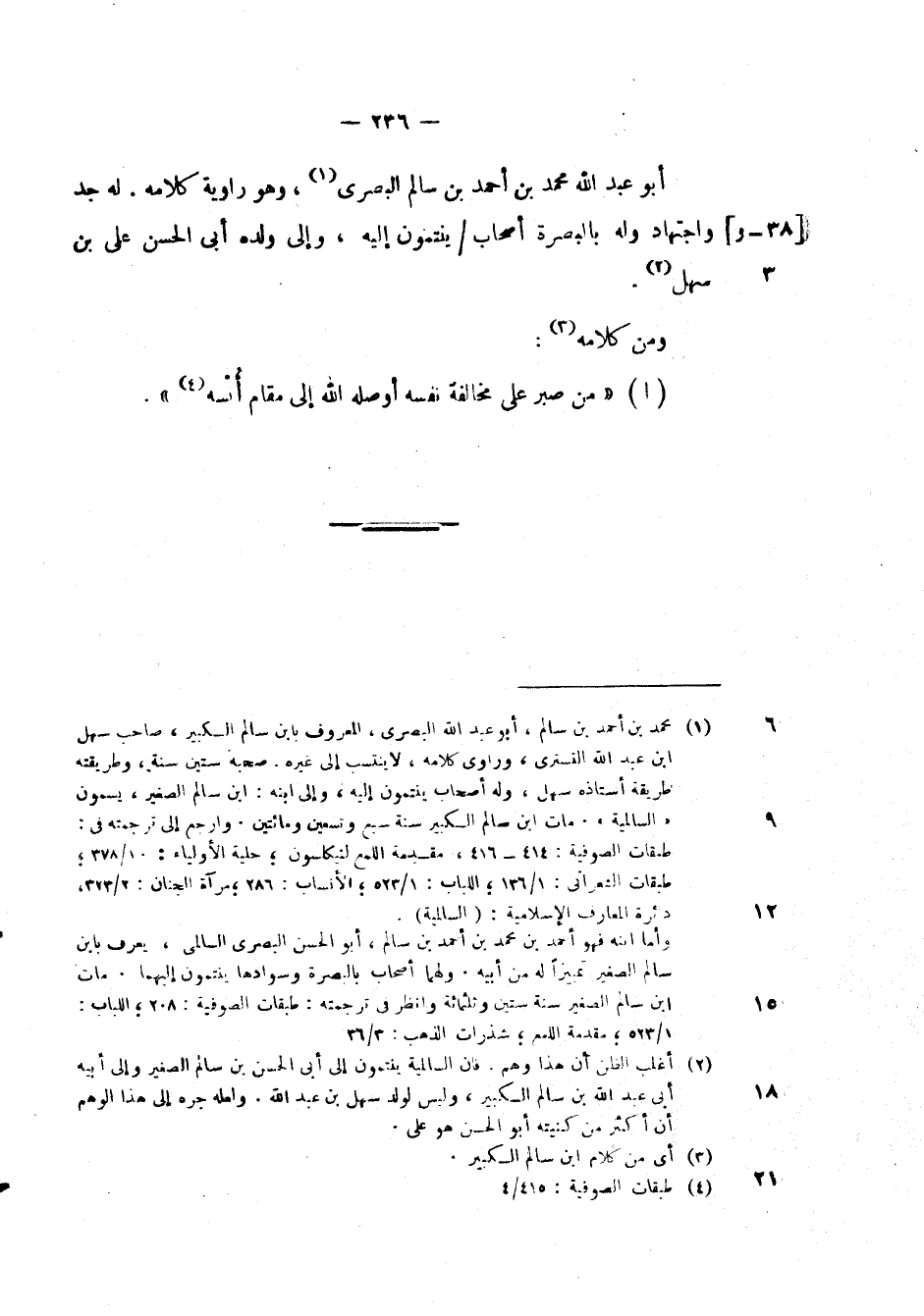 ومن كلامه: " من صبر على مخالفة نفسه أوصله الله إلى مقام انسه "