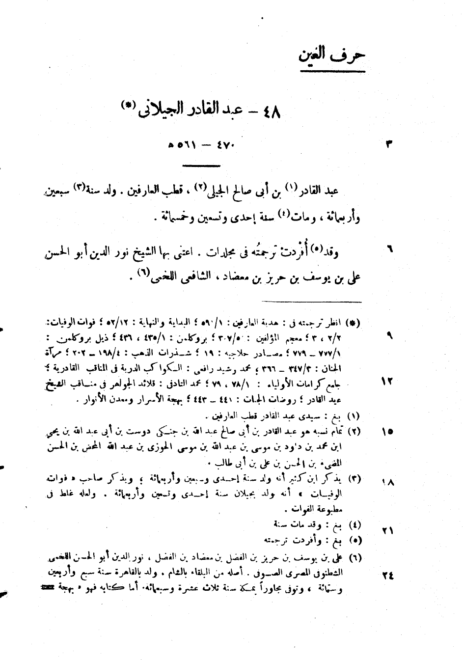 عبد القادر بن أبي صالح الجيلي، قطب العارفين. ولد سنة سبعين وأربعمائة، ومات سنة أحدى وتسعين وخمسمائة.