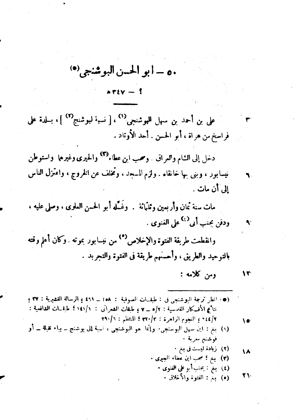 علي بن احمد بن سهل البوشنجي نسبة لبوشنج بلدة على فراشخ من هراة، أبو الحسن. أحد الأوتاد.