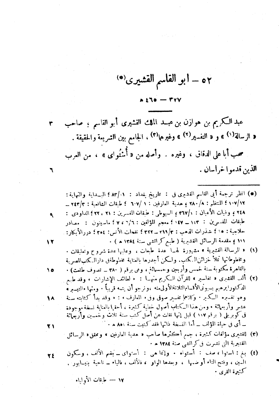 عبد الكريم بن هوازن بن عبد الملك القشيرى أبو القاسم؛ صاحب " الرسالة " و " التفسير " وغيرهما، الجامع بين الشريعة والحقيقة.