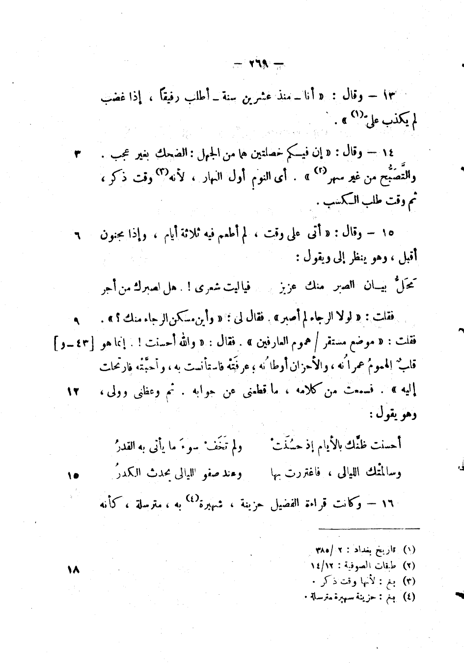 وقال: " أتى على وقت، لم أطعم فيه ثلاثة أيام، وإذا مجنون أقبل، وهو ينظر إلى ويقول: