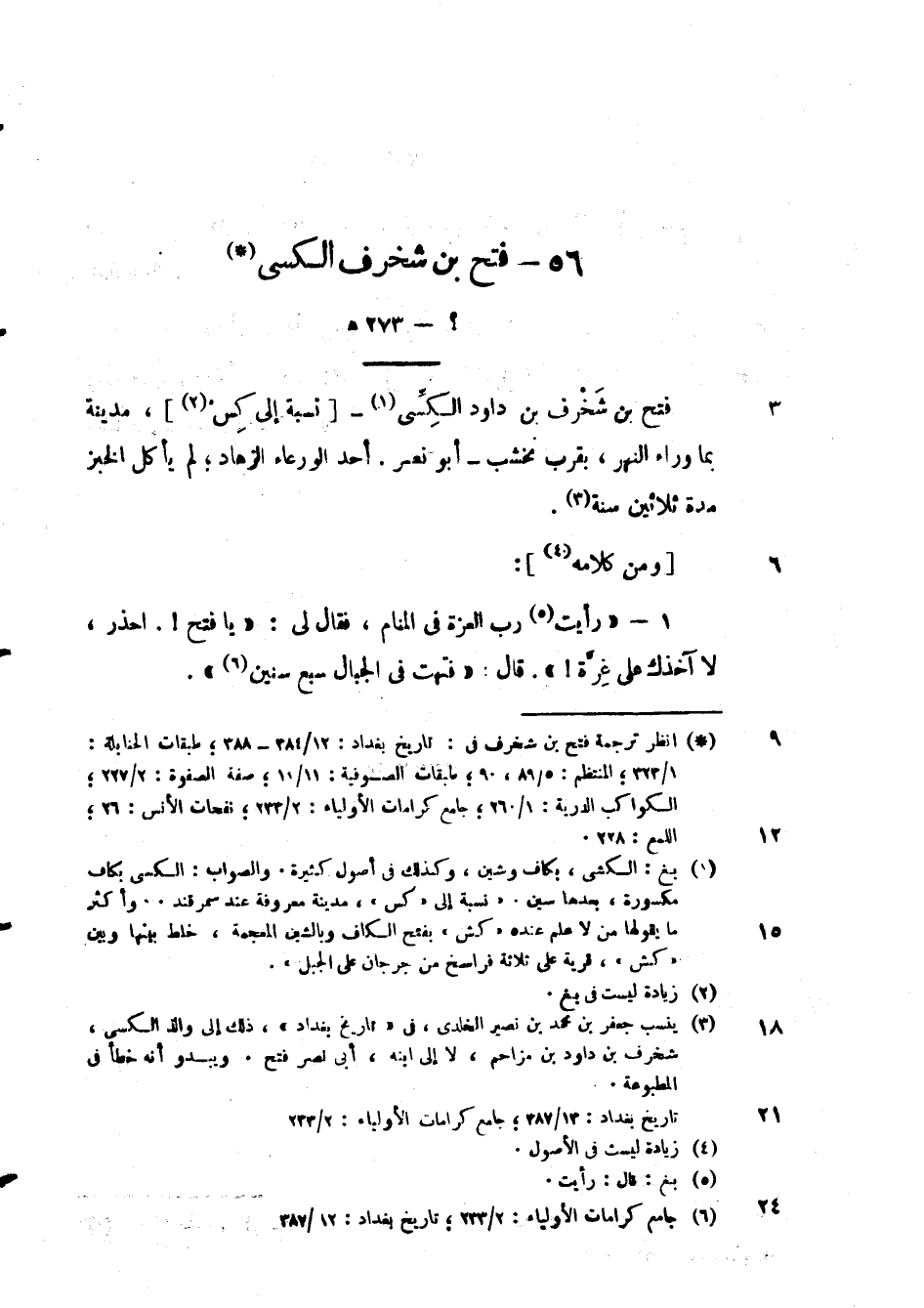 فتح بن شخرف بن داود الكسى - نسبة إلى كس، مدينة بما وراء النهر، بقرب نخشب - أبو نصر. أحد الورعاء الزهاد؛ لم يأكل الخبز مدة ثلاثين سنة.