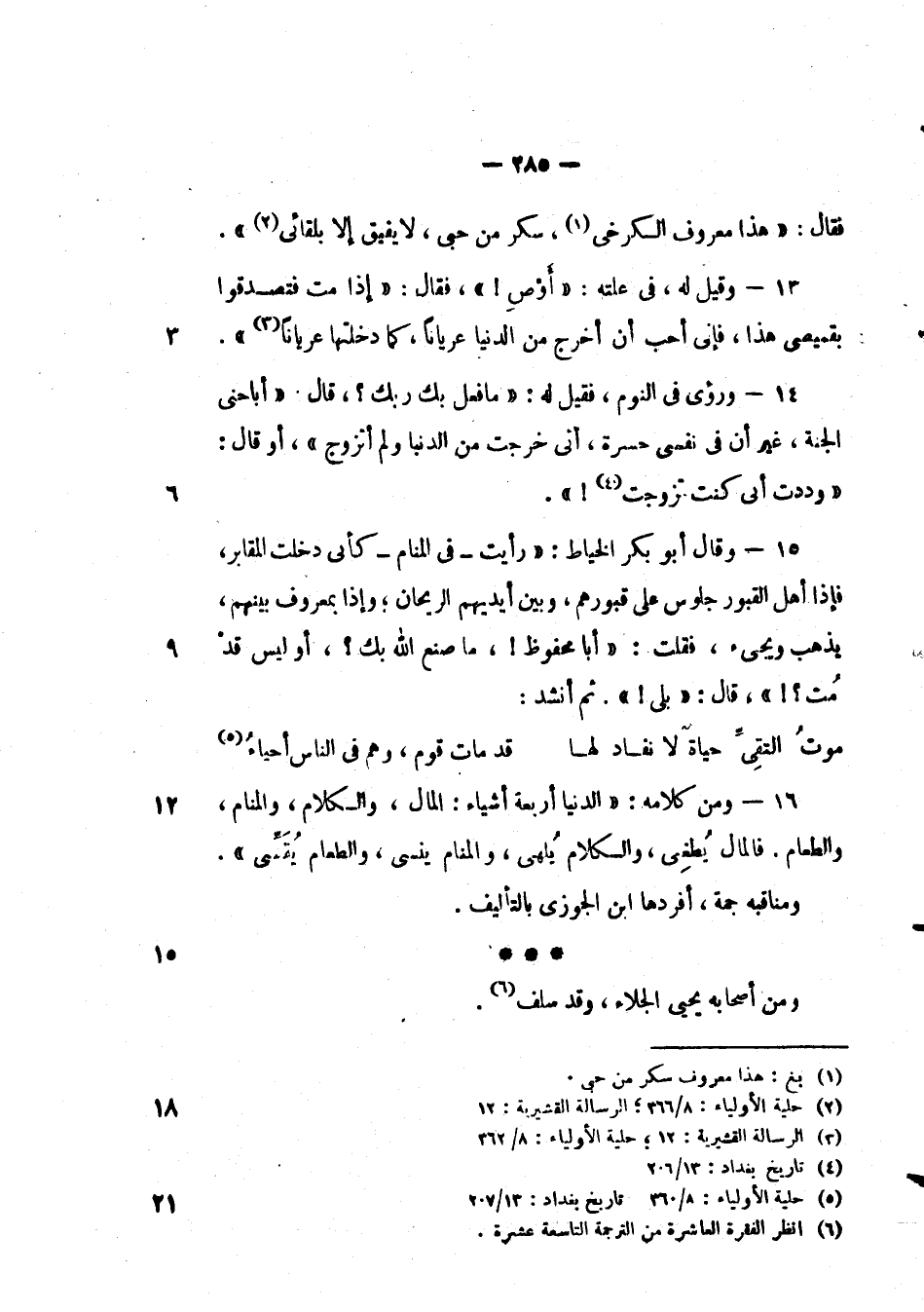 فقال: " هذا معروف الكرخي، سكر من حبي، لا يفيق إلا بلقائي ".