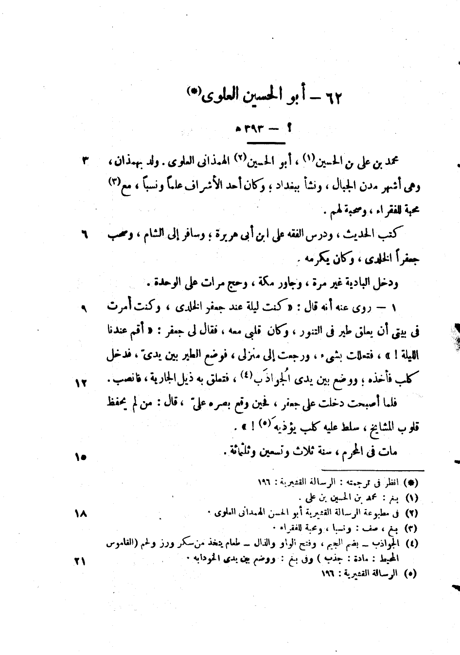محمد بن علي بن الحسين، أبو الحسين الهمداني العلوي. ولد بهمدان، وهي أشهر مدن الجبال، ونشأ ببغداد، وكان أحد الأشراف علماً ونسباً، معمحبة للفقراء، وصحبة لهم.