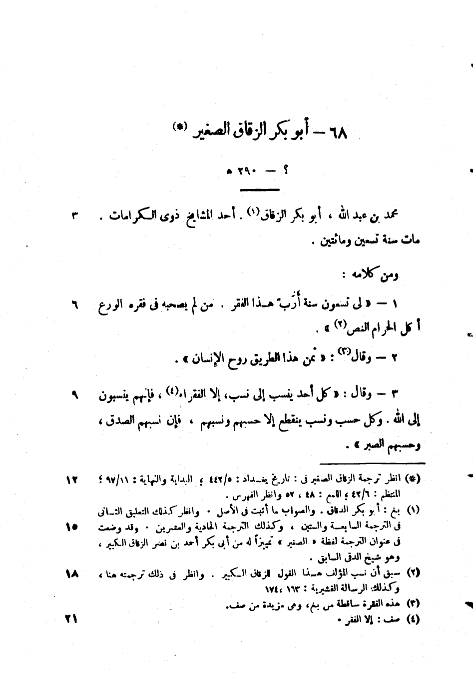 ومن كلامه: " لي تسعون سنة أرب هذا الفقر. من لم يصحبه في فقره الورع أكل الحرام النص ".
