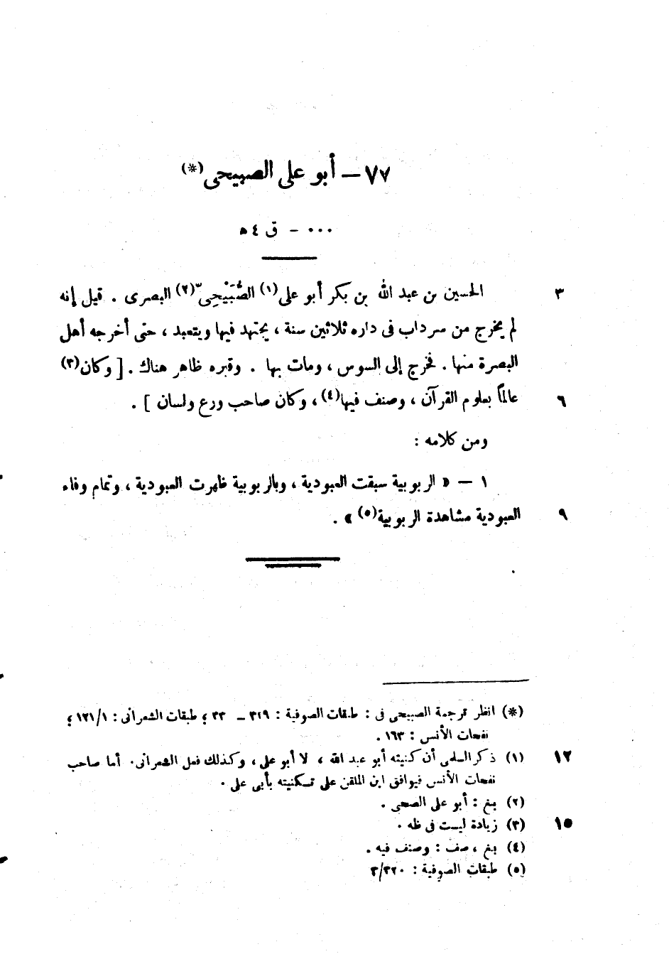 الحسن بن عبد الله بن بكر أبو على الصبيحي البصري. قيل انه لم يخرج من سرداب في داره ثلاثين سنة، يجتهد فيها ويتعبد، حتى أخرجه أهل البصرة منها. فخرج إلى السوس، ومات بها. وقبره ظاهر هناك. وكان عالما بعلوم القران، وصنف فيها، وكان صاحب ورع ولسان.