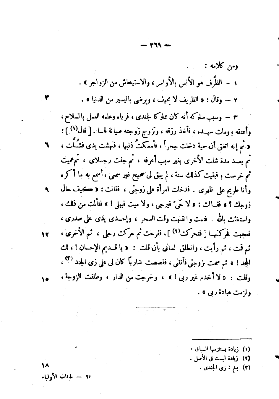 ومن كلامه: الظرف هو الأنس بالأوامر، والاستحياش من الزواجر ".