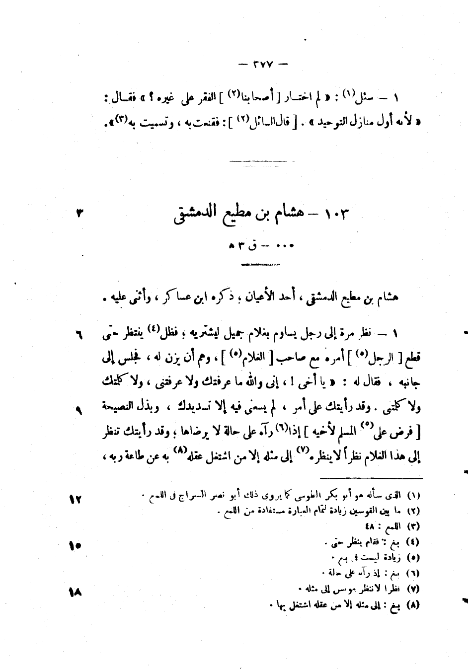 سئل: " لم اختار أصحابنا الفقر على غيره؟ " فقال:) لأنه أول منازل التوحيد ". قال السائل: فقنعت به، وتسميت به ".
