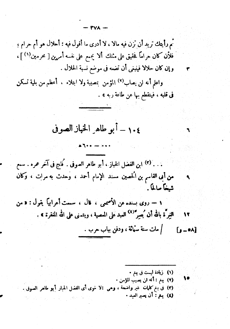 . . . ابن الفضل الخباز، أبو طاهر الصوفي. فلج في آخر عمره. سمع من ابي القاسم بن الحصين مسند الأمام احمد، وحدث به مرات، وكان شيخا صالحا.