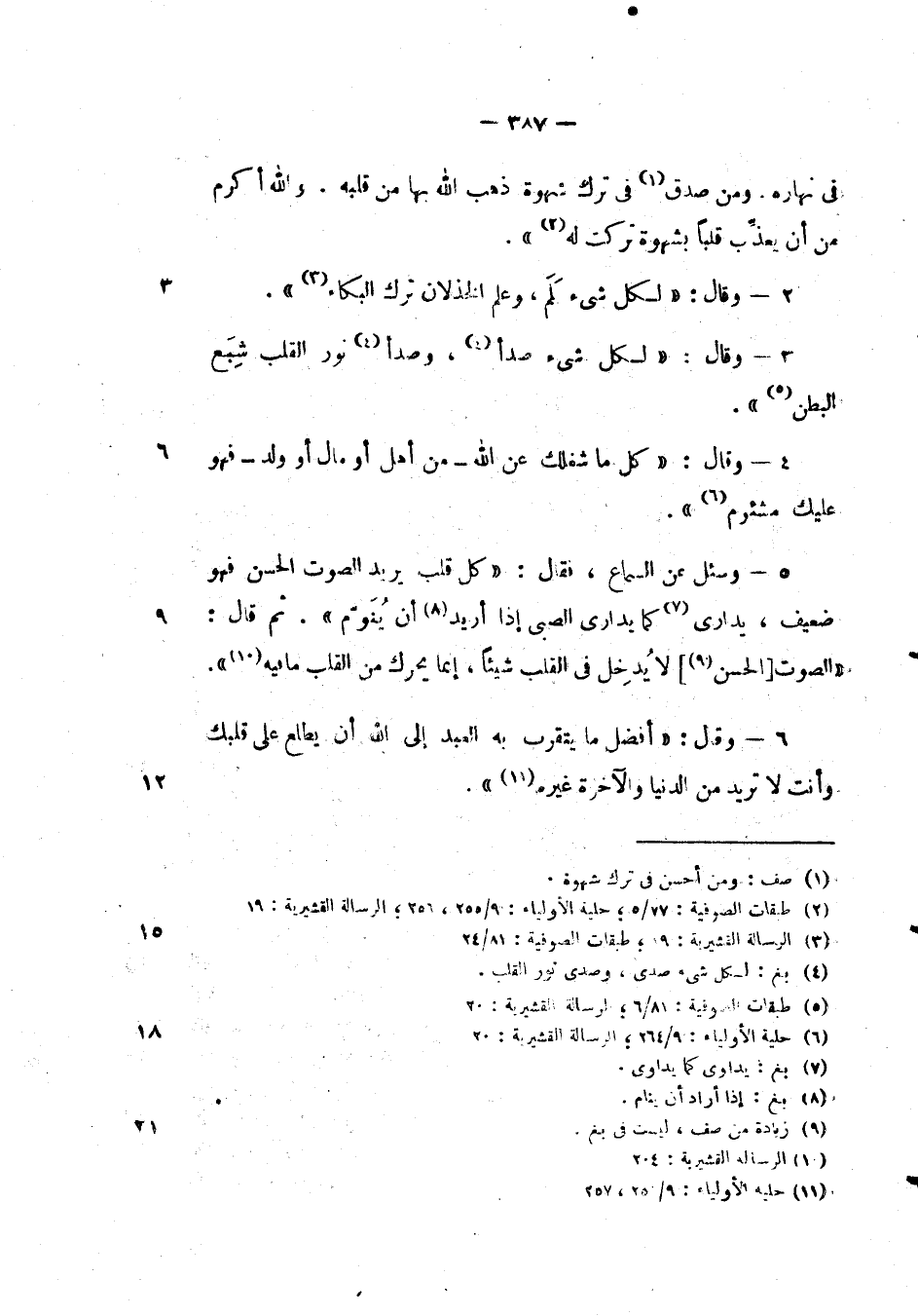 وقال: " لكل شي صدا، وصدأ نور القلب شبع البطن ".