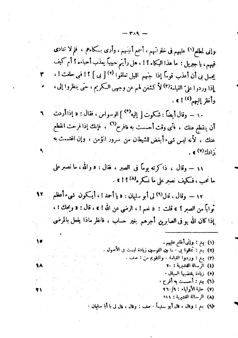 وقال، قال لي أبو سليمان: " يا احمد!، أيكون شيء اعظم ثوأبا مكن الصبر؟ " قلت: " نعم!، الرضى عن الله! "، قال: " ويحك!، إذا كان الله يوفي الصابرين أجرهم بغير حساب، فأنظر ماذا يفعل بالمرضى