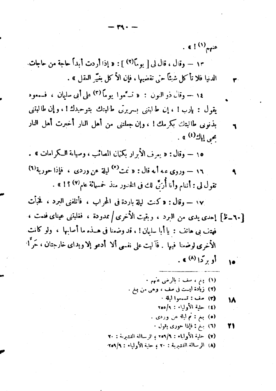 وروى عنه انه قال: " نمت ليلة عن وردي، فإذا حورية تقول لي: أتنام وأنا أُرَبى لك في الخدود منذ خمسمائة عام؟! ".