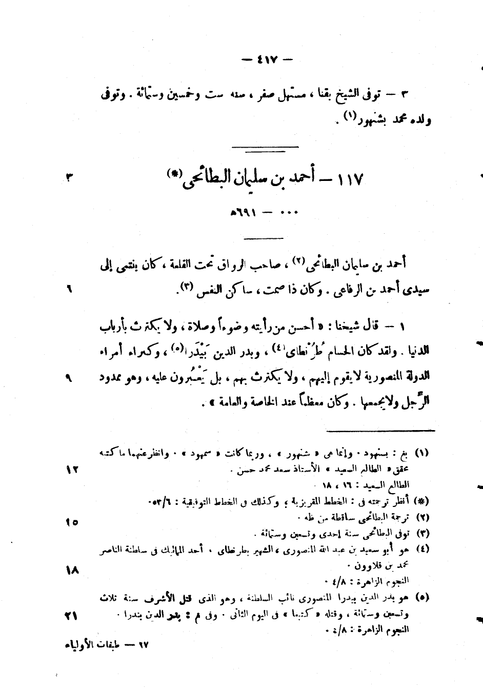 احمد بن سليمان البطائحي، صاحب الرواق تحت القلعة، كان ينتمي إلى سيدي احمد بن الرفاعي، وكان ذا صمت، ساكن النفس.