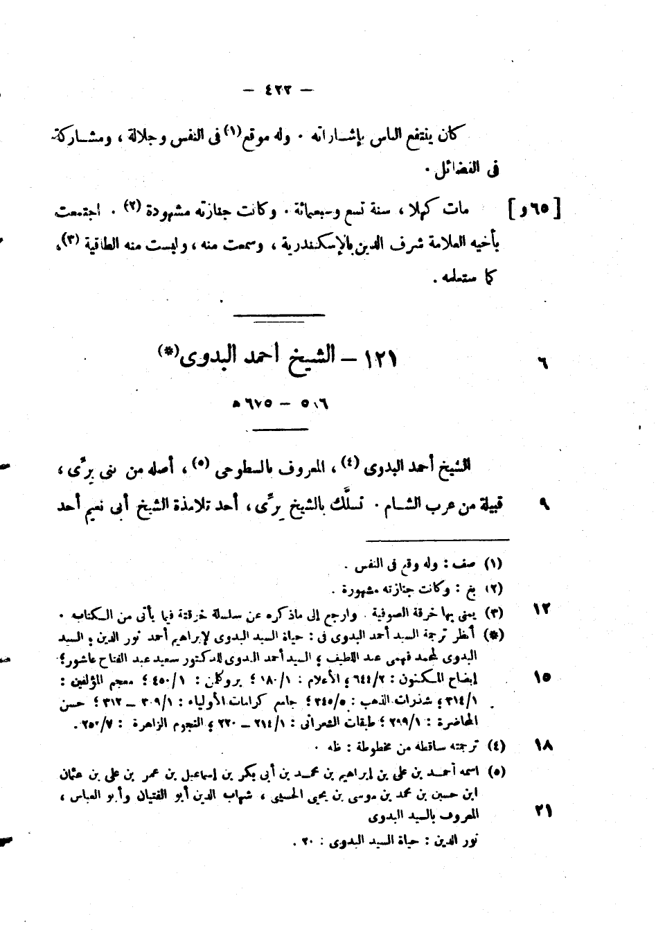 الشيخ احمد البدوي، المعروف بالسطوحي، اصله من بني برى، قبيلة من عرب الشام. تسلك بالشيخ برى، أحد تلامذة الشيخ أبي نعيم أحد