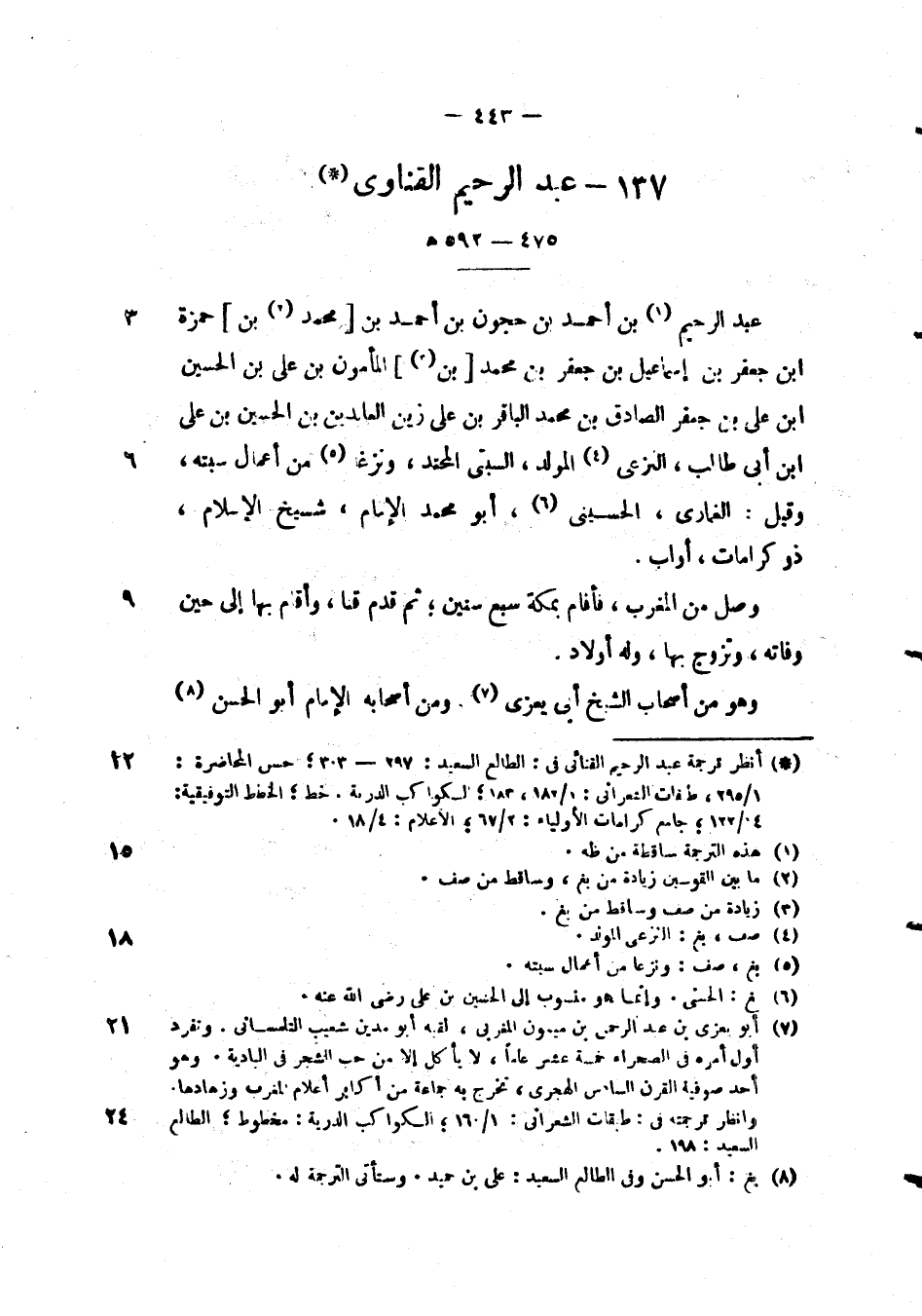 عبد الرحيم بن احمد بن حجون بن احمد بن محمد بن حمزة ابن جعفر بن إسماعيل بن جعفر بن محمد بن المأمون بن علي بن الحسين ابن علي بن جعفر الصادق بن محمد الباقر بن علي زين العابدين الحسين بن علي ابن أبي طالب، النزعي المولد، السبتي المحتد، ونزغ من اعمال سبته، وقبل: الغماري، الحسيني، أبو محمد الأمام، شيخ الأسلام، ذو كرامات، أواب.