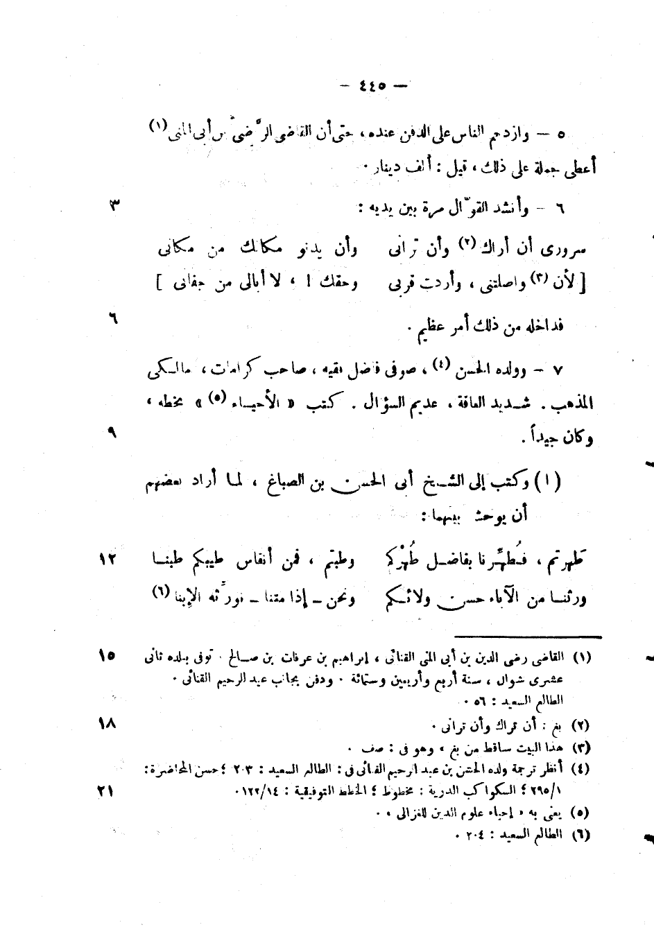 وولده الحسن، صوفي فاضل فقيه، صاحب كرامات، مالكي المذهب. شديد الفاقة، عديم السؤال، كتب " الأحياء " بخطه، وكان جيداً.