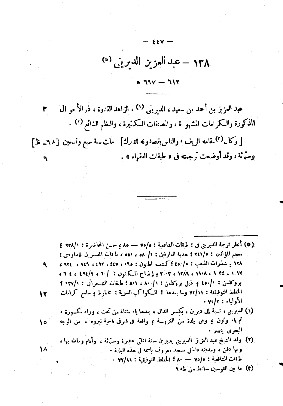عبد العزيز بن احمد بن سعيد، الديريني، الزاهد القدوة، ذو إلاحوال المذكورة والكرامات المشهورة، والمصنفات الكثيرة، والنظم الشائع.