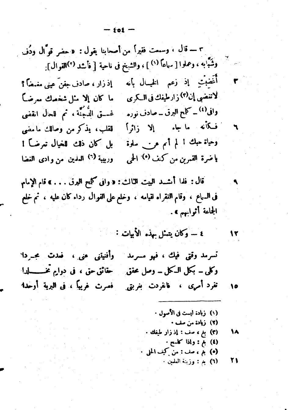 قال:، وسمعت فقيراً من أصحابنا يقول: " حضر قوال ودف وشبابه، وعملوا سماعاً والشيخ في ناحية فأنشد القوال ".