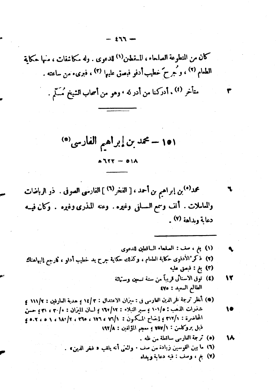 محمد بن إبراهيم بن احمد، الفخر الفارسي الصوفي. ذو الرياضات والمعاملات. ألف وسمع السلفي وغيره. وعنه المذري وغيره. كان فيه دعاية وبداعة.