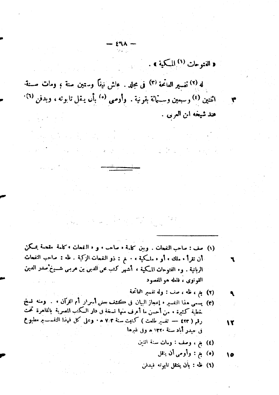 " الفتوحات الملكية " له تفسير الفاتحة في مجلد. عاش نيفاً وستين سنة، مات سنة اثنتين وسبعين وستمائة بقونية. وأوصى بأن ينقل تأبوته، ويدفن عند شيخه ابن العربي.