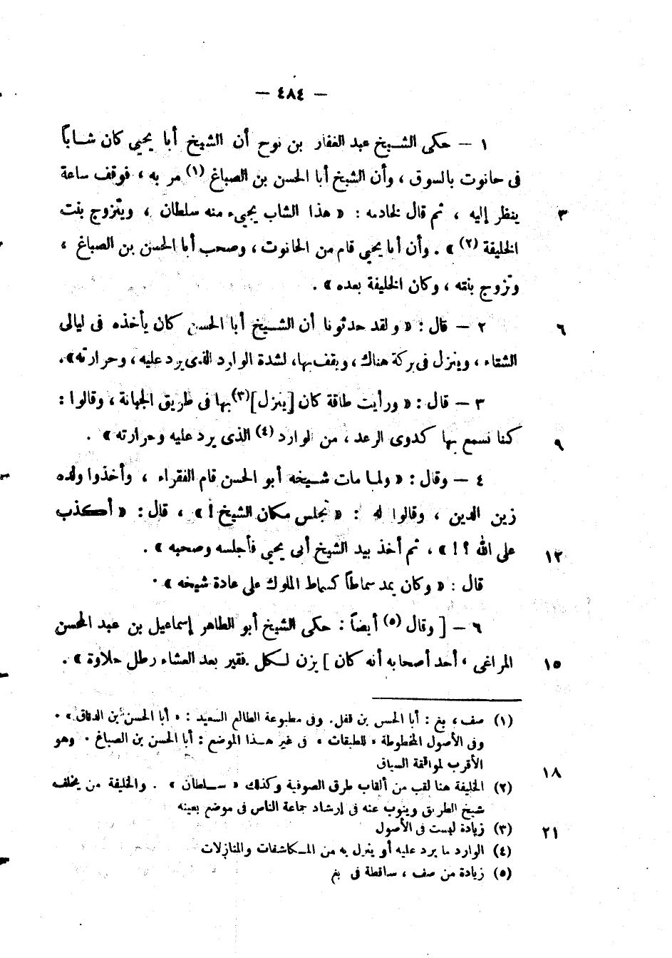 حكى الشيخ عبد الغفار بن نوح أن الشيخ أبا يحيى كان شابا في حانوت بالسوق وان الشيخ أبا الحسن بن الصباغ. مر به فوقف ساعة ينظر أليه ثم قال لخادمه " هذا الشاب يجيء منه سلطانا ويتزوج بنت الخليفة " وان أبا يحيى قام من الحانوت وصحب أبا الحسن بن الصباغ وتزوج ابنته وكان الخليفة بعده ".