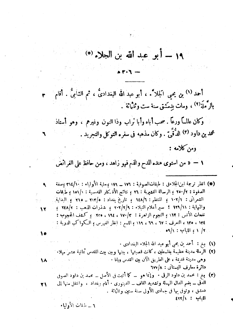 أحمد بن يحيى الجلاء، أبو عبد الله البغدادي، ثم الشافعي. أقام بالرملة، ومات بدمشق سنة ست وثلثمائة.