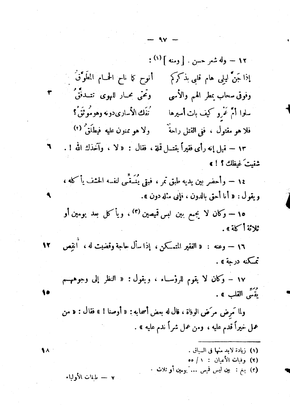 قيل إنه رأى فقيراً يقتل قملة، فقال: " لا، وآخذك الله!. شفيت غيظك؟! ".