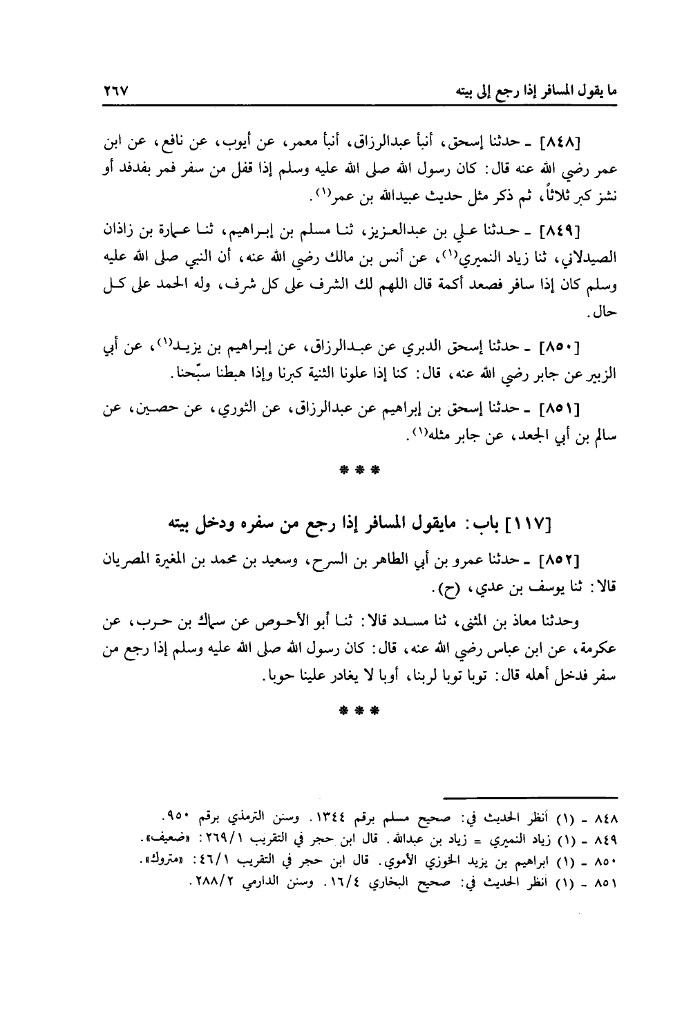 §851 - بَابُ مَا يَقُولُ الْمُسَافِرُ إِذَا رَجَعَ مِنْ سَفَرِهِ وَدَخَلَ بَيْتَهُ