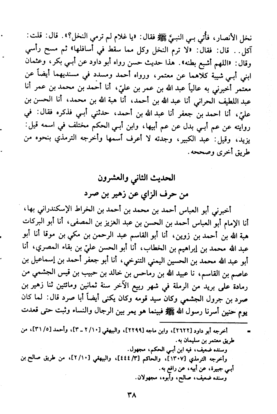 الحَدِيث الثَّانِي وَالْعشْرُونَ من حرف الزَّاي عَن زُهَيْر بْن صرد