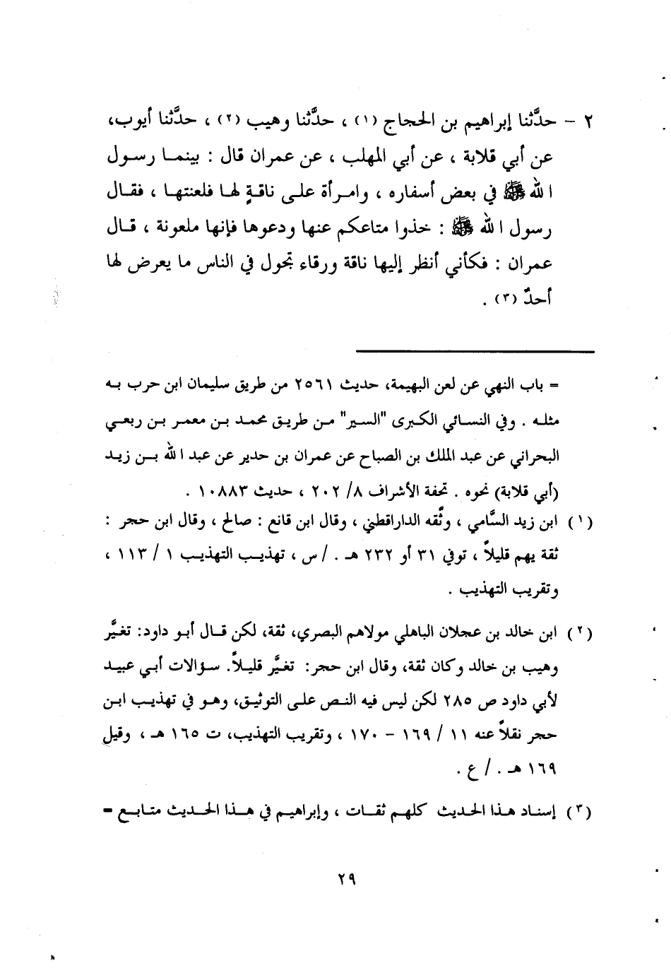 3 - حَدَّثَنَا سُلَيْمَانُ بْنُ حَرْبٍ، وَعَارِمٌ، قَالَا: حَدَّثَنَا حَمَّادُ بْنُ زَيْدٍ، عَنْ أَيُّوبَ، عَنْ أَبِي قِلَابَةَ، عَنْ أَبِي الْمُهَلَّبِ، عَنْ عِمْرَانَ، أَنَّ رَجُلًا §أَعْتَقَ سِتَّةَ أَعْبُدٍ لَهُ عِنْدَ مَوْتِهِ لَمْ يَكُنْ لَهُ مَالٌ غَيْرُهُمْ فَبَلَغَ ذَلِكَ رَسُولَ اللهِ صَلَّى اللَّهُ عَلَيْهِ وَسَلَّمَ فَقَالَ لِلرَّجُلِ قَوْلًا شَدِيدًا ثُمَّ دَعَاهُمْ فَجَزَّأَهُمْ ثَلَاثَةَ أَجْزَاءٍ فَأَقْرَعَ بَيْنَهُمْ فَأَعْتَقَ اثْنَيْنِ وَأَرَقَّ أَرْبَعَةً لَفْظُ سُلَيْمَانَ (1)